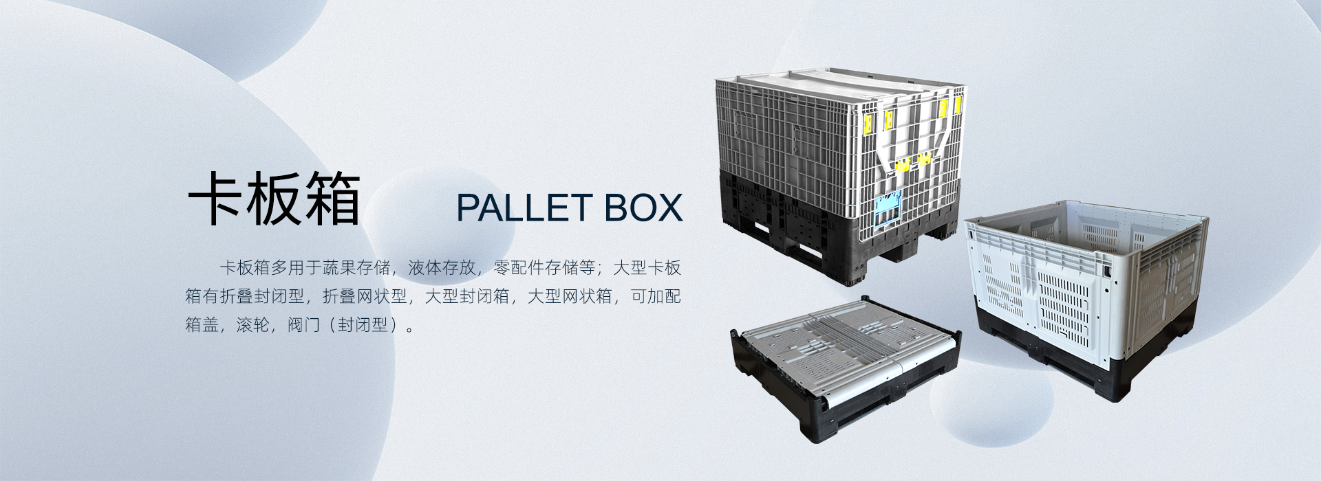 • 卡板箱多用于蔬果存储,液体存放,零配件存储等;大型卡板箱有折叠封闭型、折叠网状型、大型封闭箱、大型网状箱;可加配箱盖,滚轮、阀门(封闭型)。